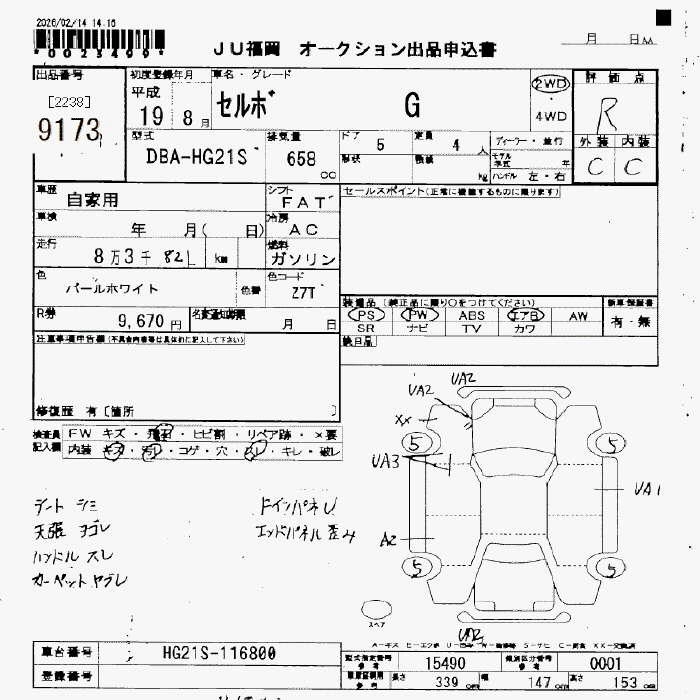 Статус выставлен на аукцион Лот 9173 Аукцион JU Fukuoka Дата аукциона 13.03.2026