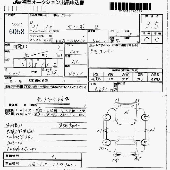 Год выпуска2009 Пробег 77 000 км КузовHG21S КомплектацияG