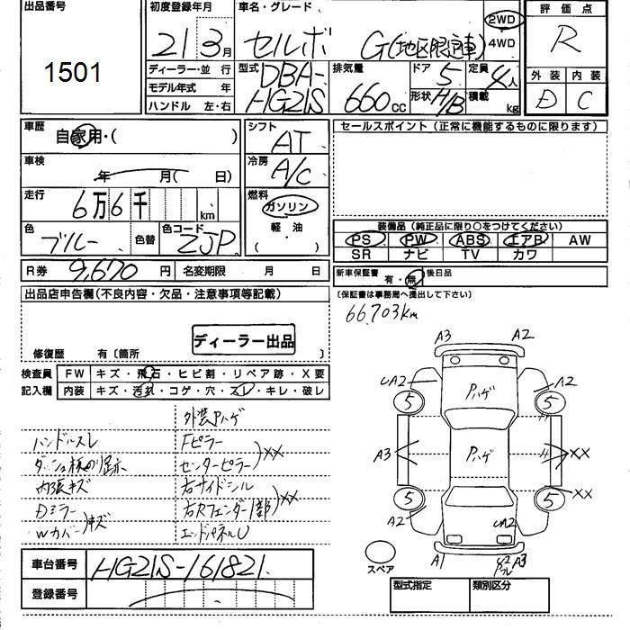 Год выпуска2009 Пробег 67 000 км КузовHG21S КомплектацияG AREA LIMITATION CAR