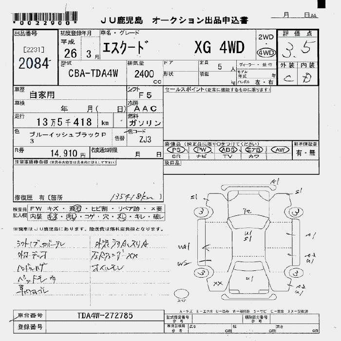 Год выпуска2014 Пробег 135 000 км КузовTDA4W Комплектация4WD 2.4XG