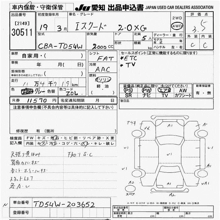 Статус выставлен на аукцион Лот 30511 Аукцион JU Aichi Дата аукциона 12.03.2026