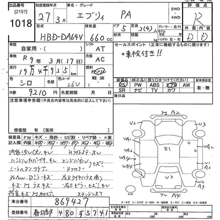 SUZUKI EVERY VAN 2015 г., лот № 1018