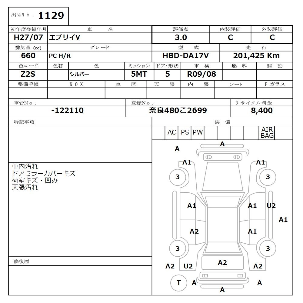 Статус продан Лот 1129 Аукцион Nissan Osaka Дата аукциона 20.10.2025