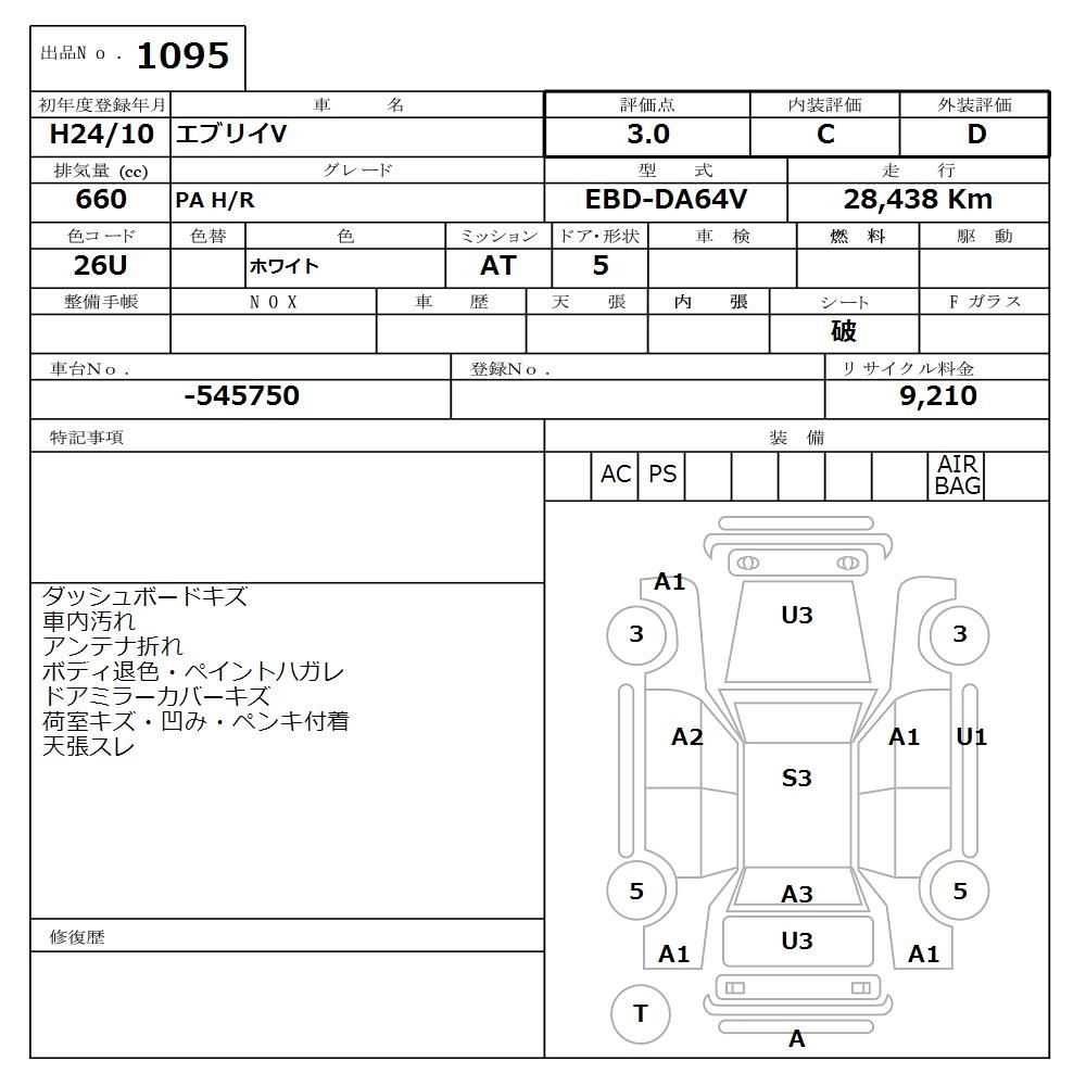 Статус выставлен на аукцион Лот 1095 Аукцион Nissan Osaka Дата аукциона 17.11.2025