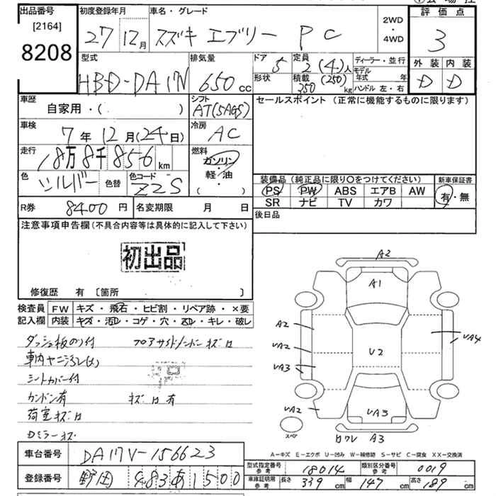 SUZUKI EVERY VAN 2015 г., лот № 8208