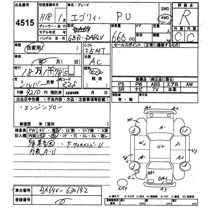 Год выпуска2006 Пробег 182 000 км КузовDA64V Комплектация4WD PU