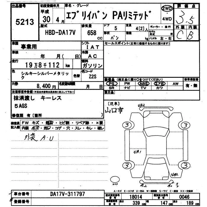 SUZUKI EVERY VAN 2018 г., лот № 5213