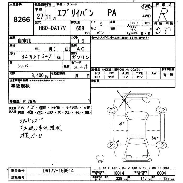 SUZUKI EVERY VAN 2015 г., лот № 8266