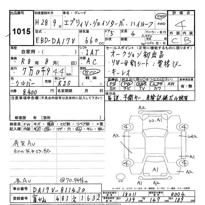 Статус выставлен на аукцион Лот 1015 Аукцион JU Shizuoka Дата аукциона 10.03.2026