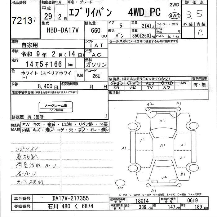SUZUKI EVERY VAN 2017 г., лот № 7213