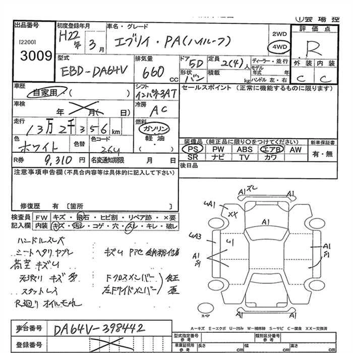 Год выпуска2010 Пробег 132 000 км КузовDA64V Комплектация4WD PA HIGH ROOF