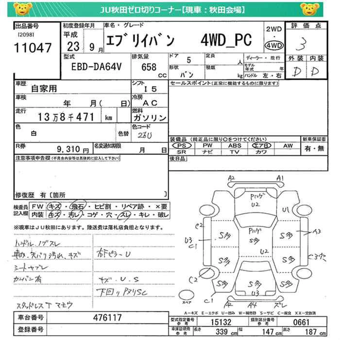 Год выпуска2011 Пробег 138 000 км КузовDA64V Комплектация4WD PC