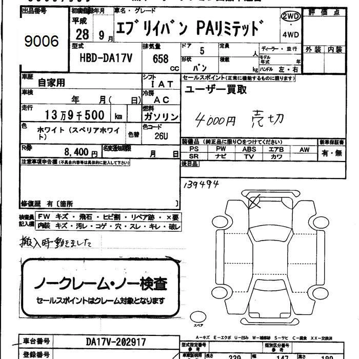 SUZUKI EVERY VAN 2016 г., лот № 9006