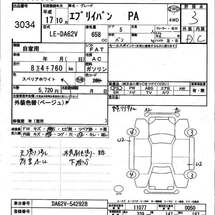 SUZUKI EVERY VAN 2005 г., лот № 3034