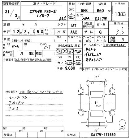 SUZUKI EVERY WAGON 2019 г., лот № 1383