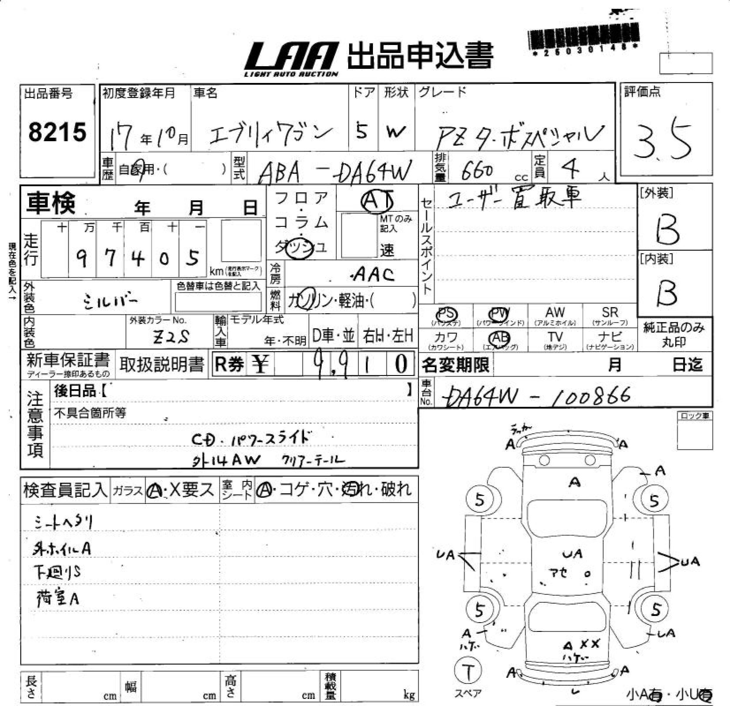 SUZUKI EVERY WAGON 2005 г., лот № 8215