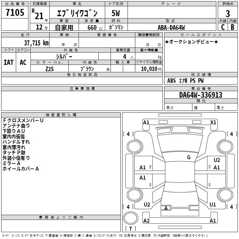 SUZUKI EVERY WAGON 2009 г., лот № 7105