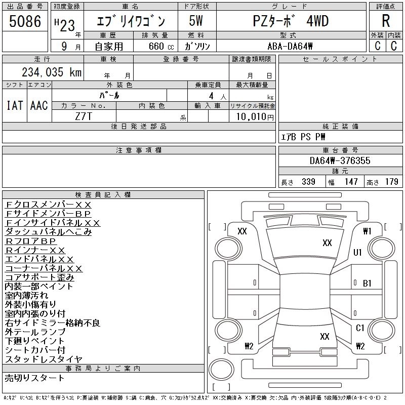 Год выпуска2011 Пробег 234 000 км КузовDA64W КомплектацияPZ TURBO 4WD