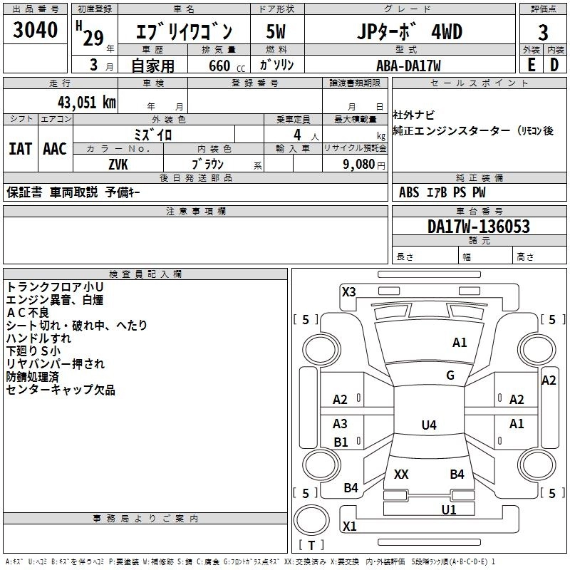 Год выпуска2017 Пробег 43 000 км КузовDA17W КомплектацияJP TURBO 4WD