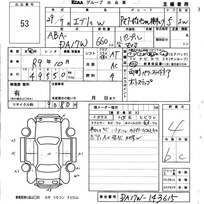 SUZUKI EVERY WAGON 2017 г., лот № 53