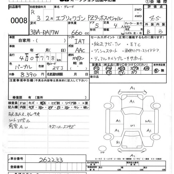 SUZUKI EVERY WAGON 2021 г., лот № 8