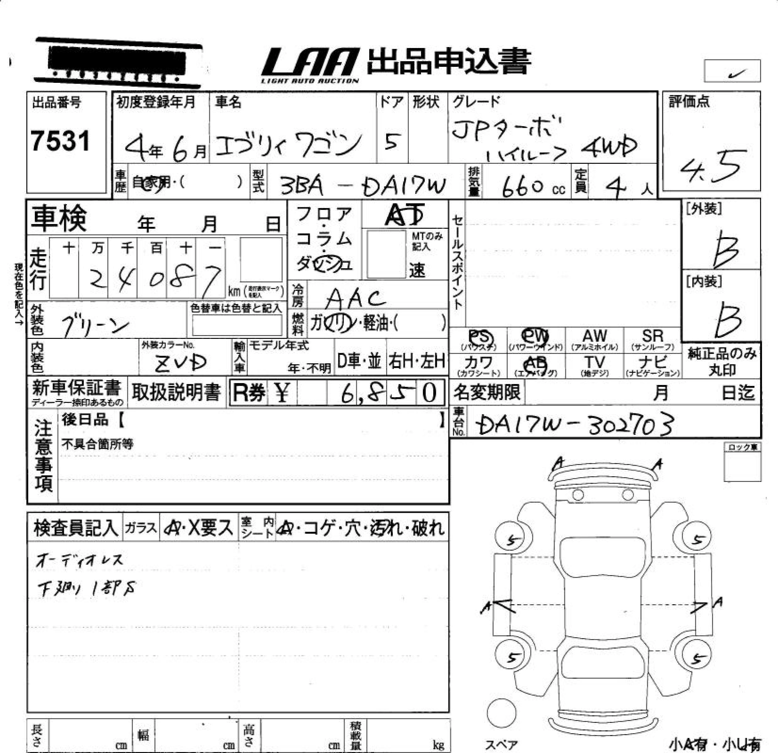 Статус продан Лот 7531 Аукцион LAA Okayama Дата аукциона 23.01.2026
