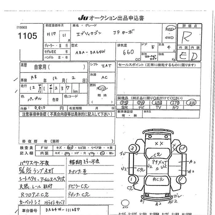 Год выпуска2005 Пробег 121 000 км КузовABA-DA64W КомплектацияJP TURBO