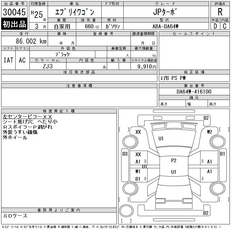 Год выпуска2013 Пробег 86 000 км КузовDA64W КомплектацияJP TURBO