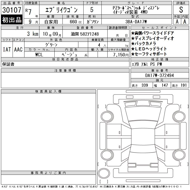 SUZUKI EVERY WAGON 2025 г., лот № 30107