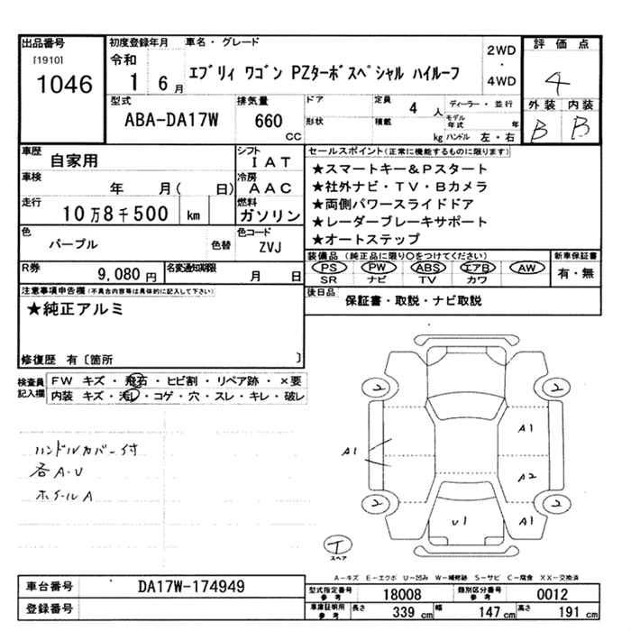 SUZUKI EVERY WAGON 2019 г., лот № 1046