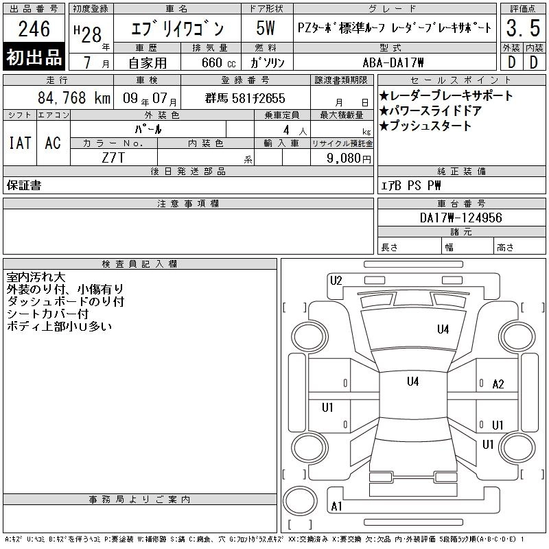 SUZUKI EVERY WAGON 2016 г., лот № 246