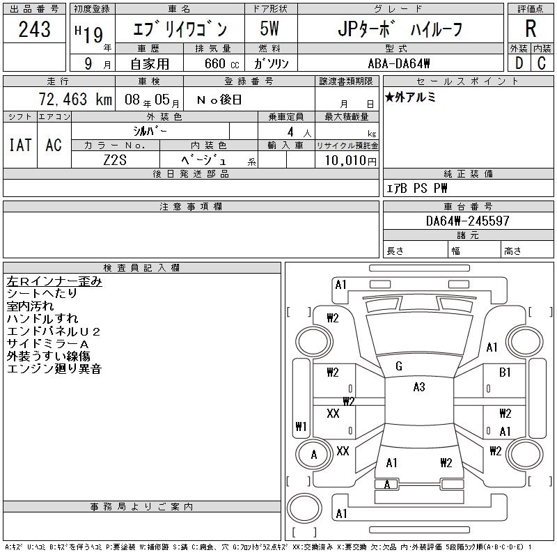 Год выпуска2007 Пробег 72 000 км КузовDA64W КомплектацияJP TURBO HIGH ROOF