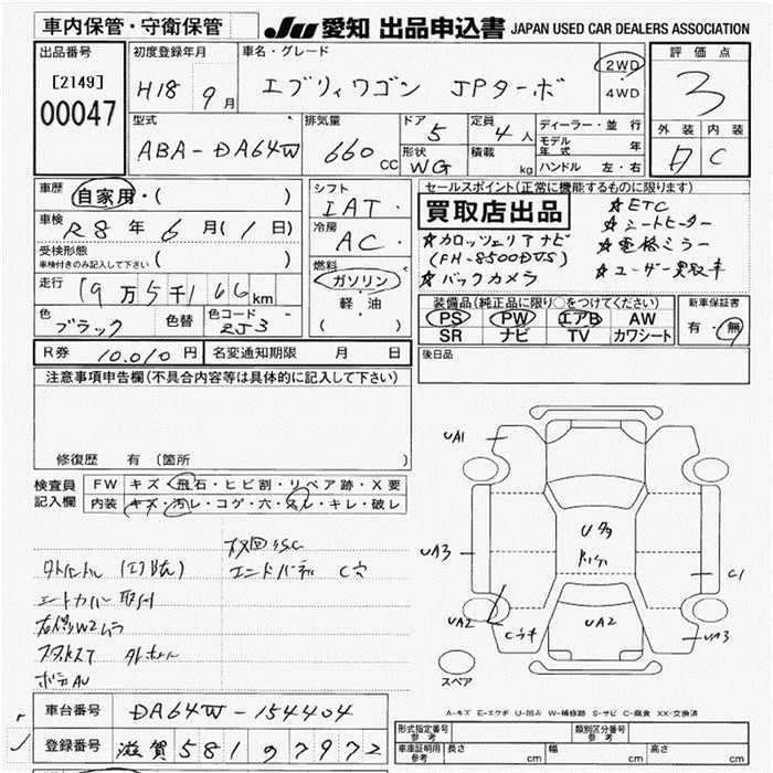Год выпуска2006 Пробег 195 000 км КузовDA64W КомплектацияJP TURBO