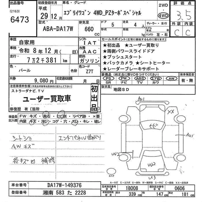 Год выпуска2017 Пробег 72 000 км КузовDA17W Комплектация4WD_PZ TURBO SPECIAL