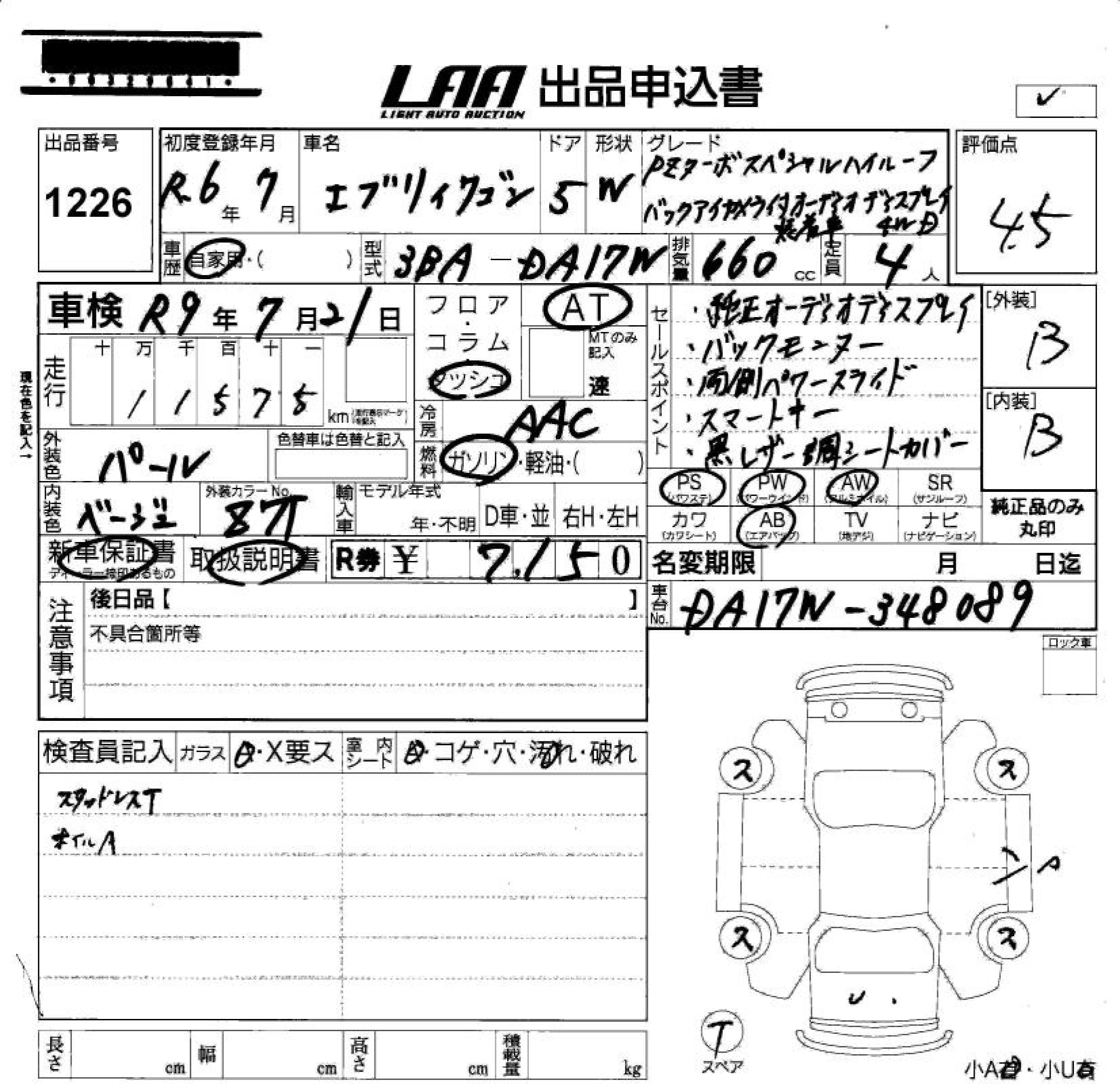SUZUKI EVERY WAGON 2024 г., лот № 1226