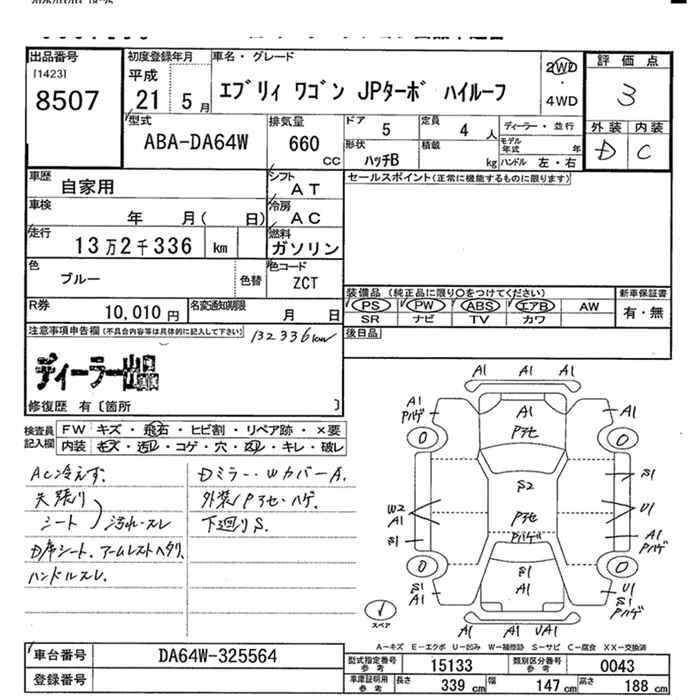 Год выпуска2009 Пробег 132 000 км КузовABA-DA64W КомплектацияJP TURBO HIGH ROOF 2WD