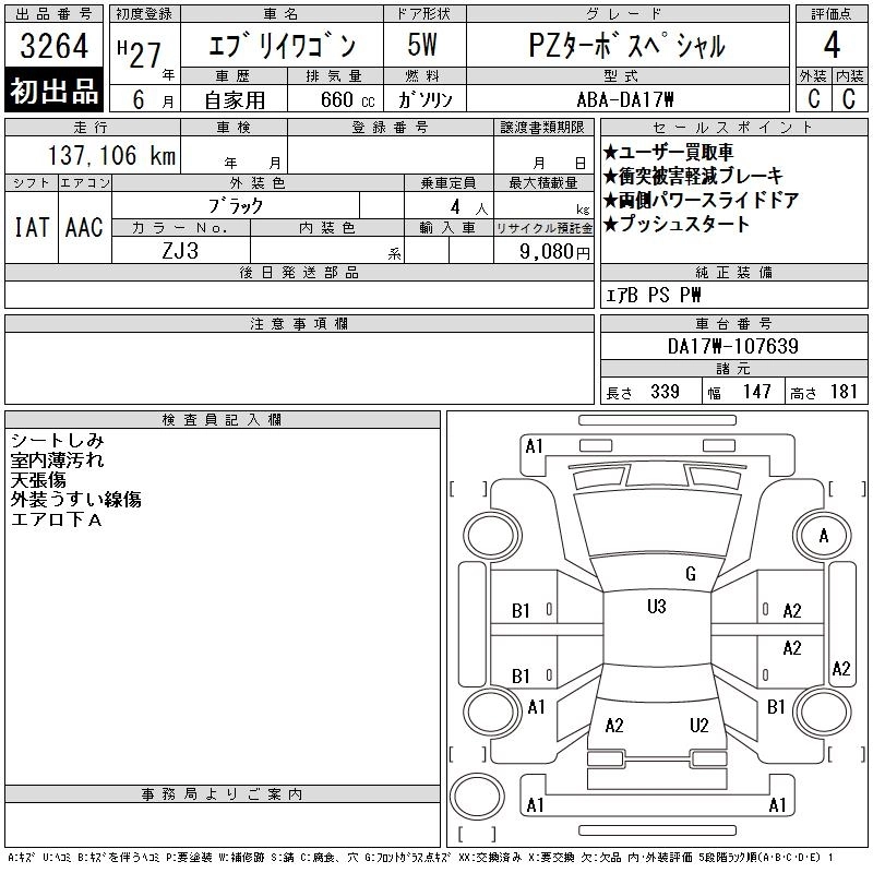 SUZUKI EVERY WAGON 2015 г., лот № 3264