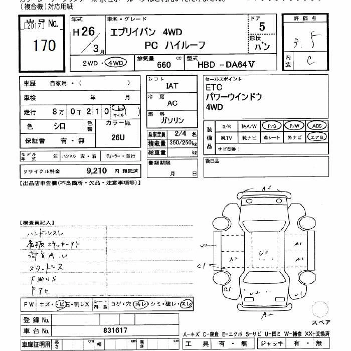 Год выпуска2014 Пробег 80 000 км КузовDA64V Комплектация4WD PC HIGH ROOF