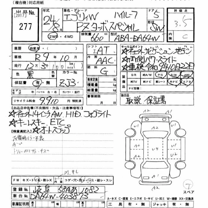 Год выпуска2012 Пробег 123 000 км КузовDA64W КомплектацияPZ TURBO SPECIAL HIGH ROOF