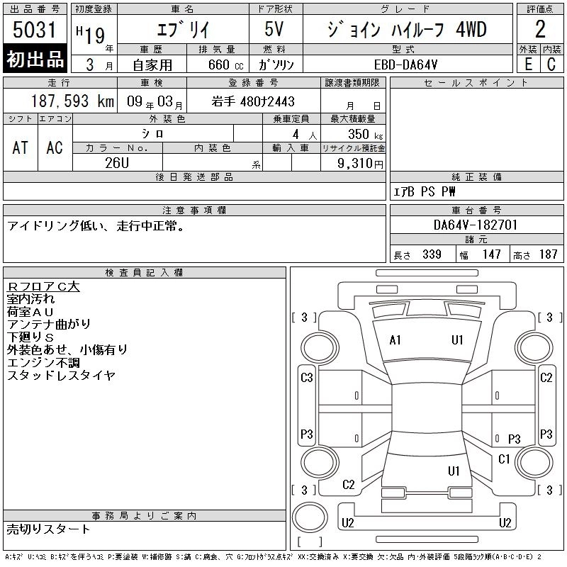 Год выпуска2007 Пробег 188 000 км КузовDA64V Комплектация JOIN HIGH ROOF 4WD