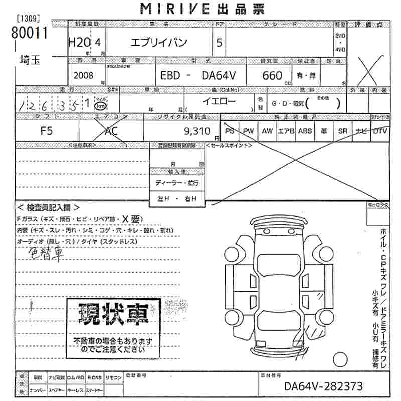 Статус выставлен на аукцион Лот 80011 Аукцион MIRIVE Saitama Дата аукциона 10.12.2025