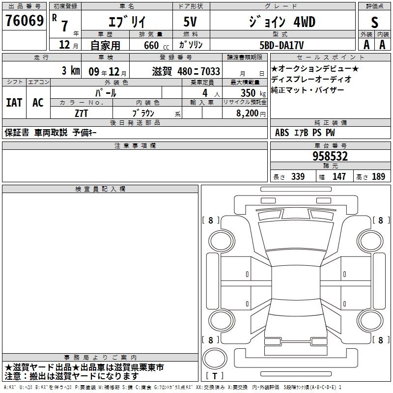 SUZUKI EVERY 2025 г., лот № 76069