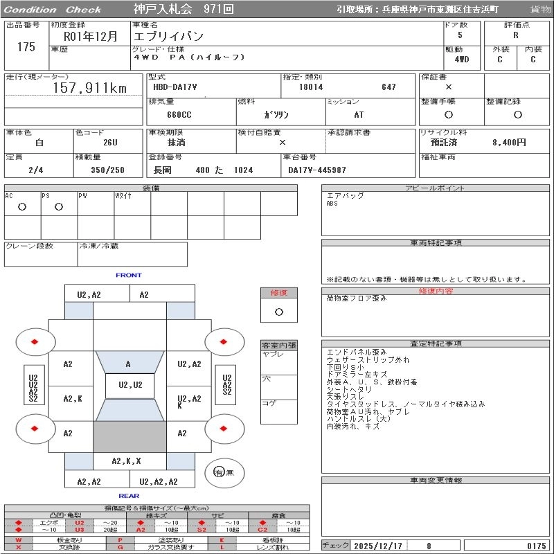 Год выпуска2019 Пробег 158 000 км КузовDA17V Комплектация4WD PA( HIGH ROOF )