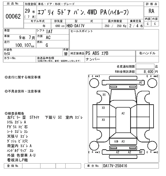 Год выпуска2017 Пробег 100 000 км КузовDA17V КомплектацияPA( HIGH ROOF )