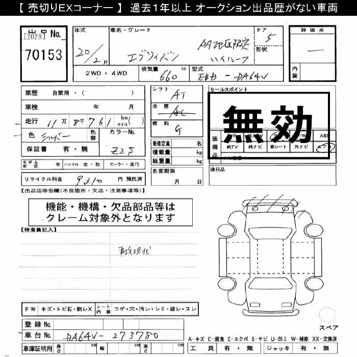 Год выпуска2008 Пробег 118 000 км КузовDA64V КомплектацияPA HIGH ROOF AREA LIMITATION