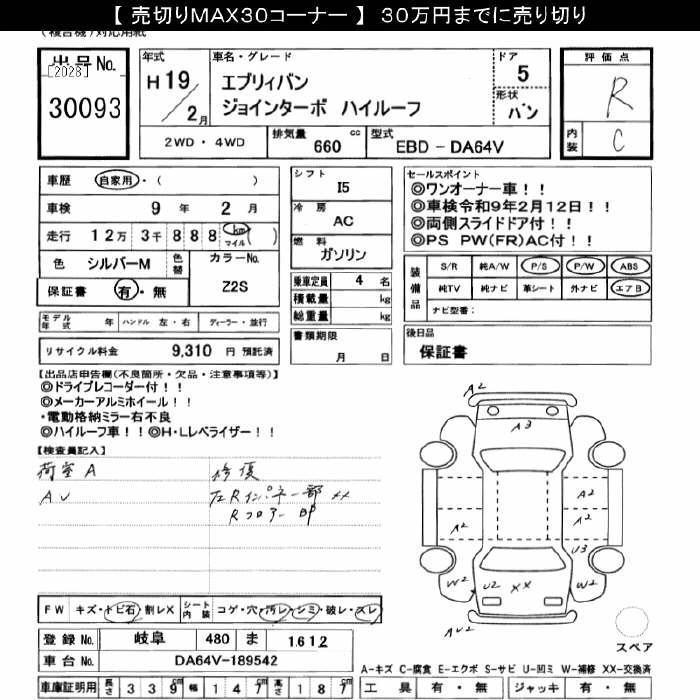 Год выпуска2007 Пробег 123 000 км КузовDA64V КомплектацияJO INTER BO HIGH ROOF