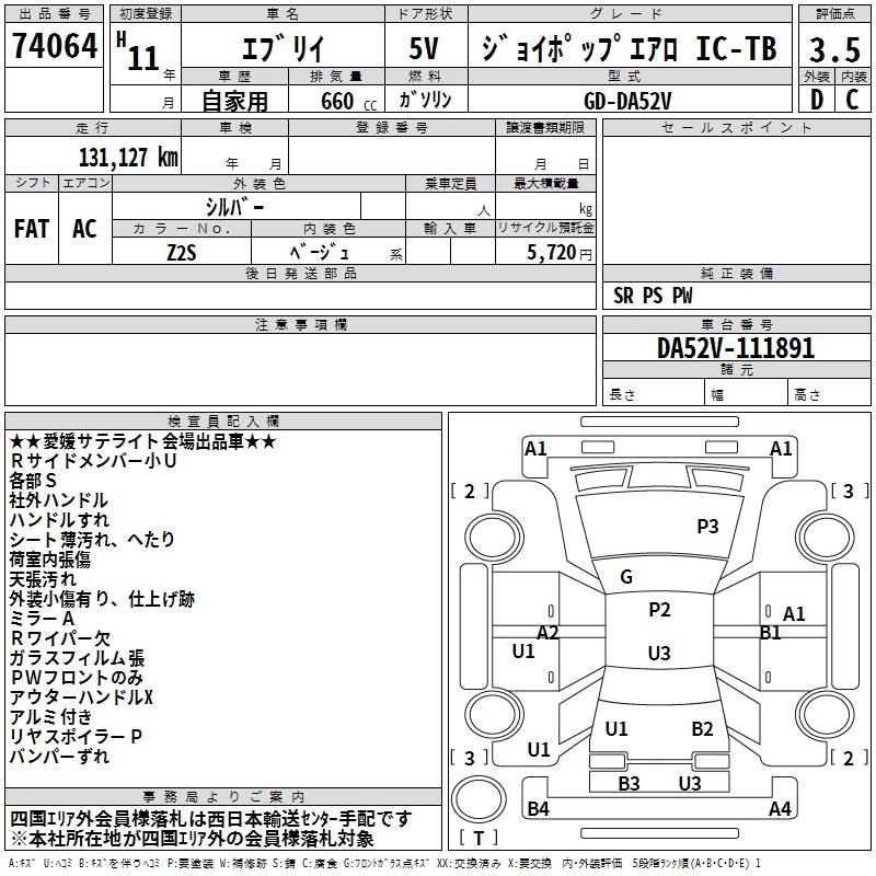 Год выпуска1999 Пробег 131 000 км КузовDA52V Комплектация JOY POP AERO IC-TB