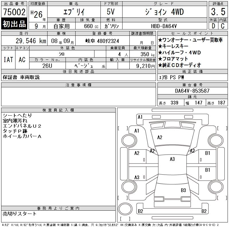 Статус выставлен на аукцион Лот 75002 Аукцион CAA Gifu Дата аукциона 10.03.2026