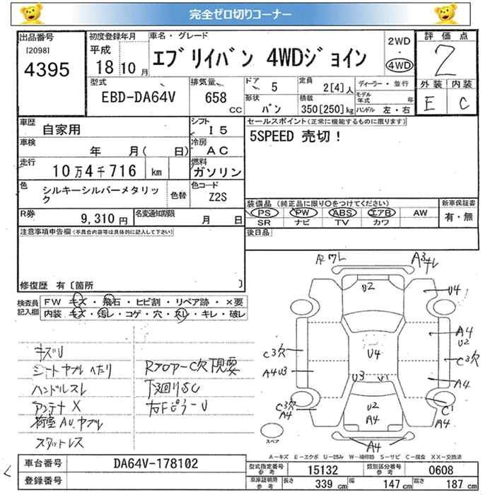 Год выпуска2006 Пробег 105 000 км КузовDA64V Комплектация4WD JOIN