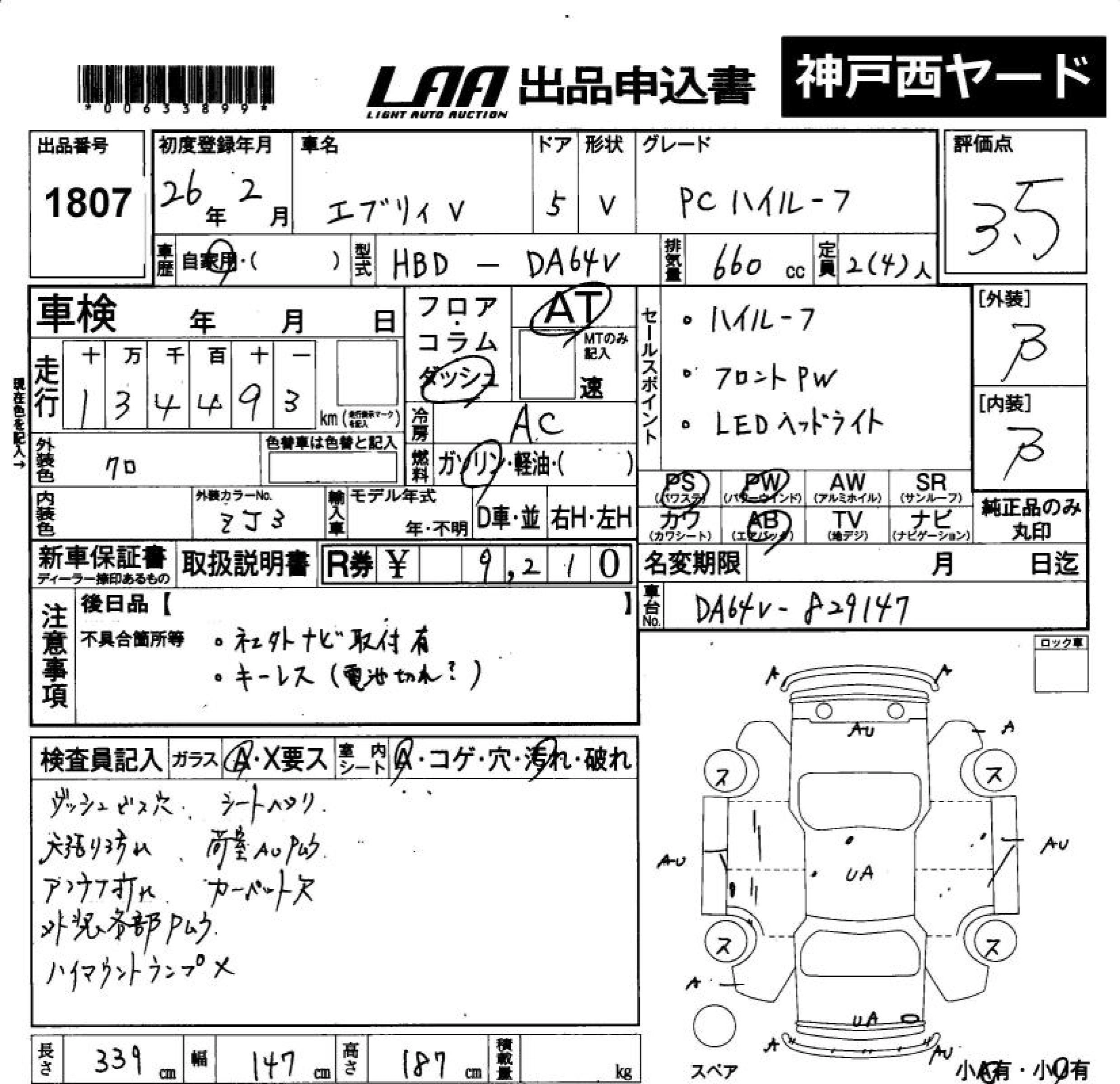 Год выпуска2014 Пробег 134 000 км КузовDA64V КомплектацияPC HIGH ROOF